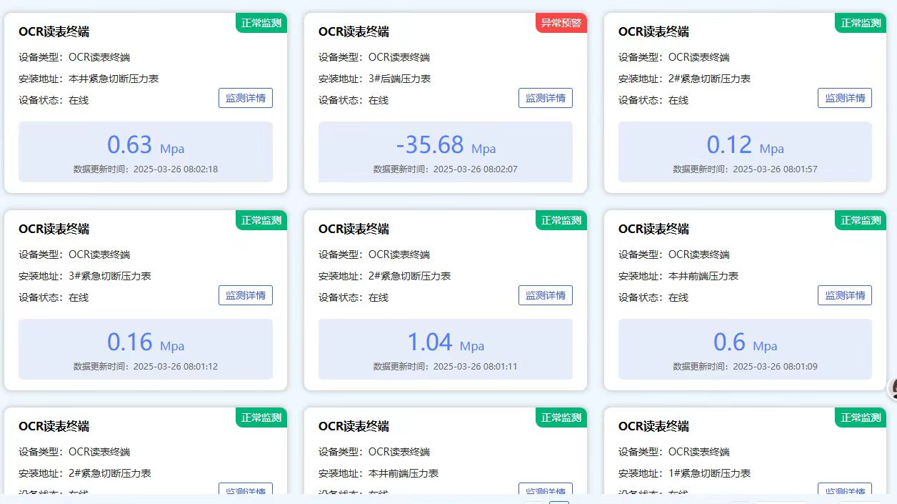 项目需求:指针式表计(压力表、温度表)数据采集汇集至延长石油集团安全生产智慧化管理平台,便于统一监控管理。